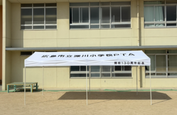 カーテン生地はインパクトのある「ブルー色」、そして「火気厳禁」と注意喚起用の印刷を施しました。