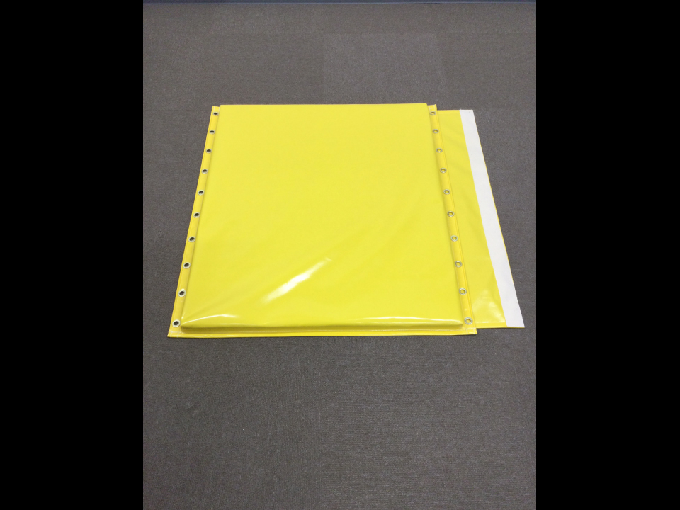①本体の両端部の、出っ張りシート(通称タレシート)に「ハトメ(真鍮製の穴)」加工が施されております。