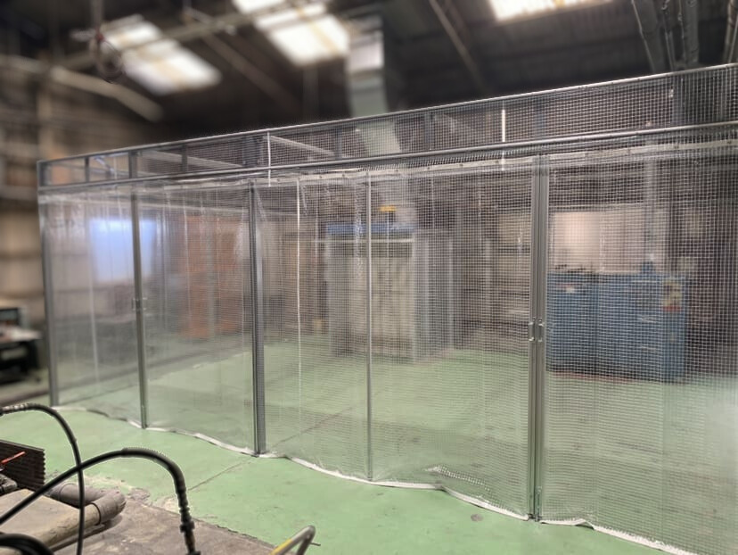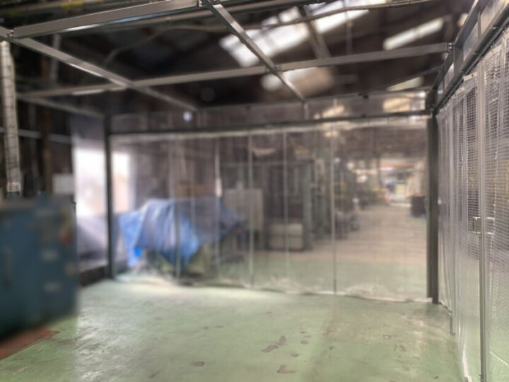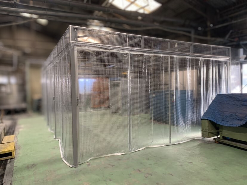 製造企業様の室内にて、特注間仕切りブースを設計施工致しました。側面にはカーテンが付いており出入りができる仕様です。