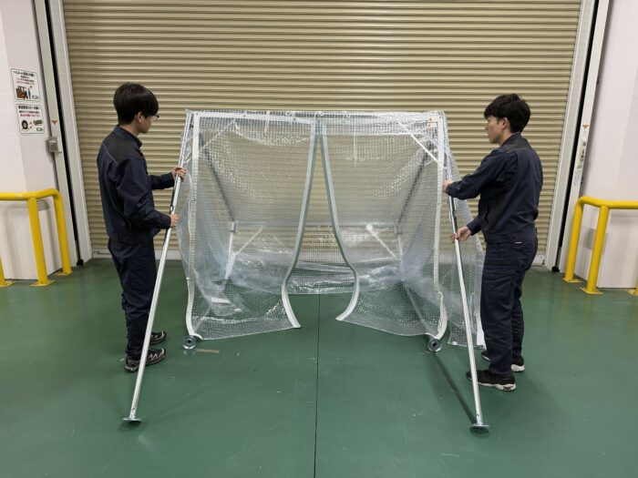 2人で隣り合う柱を持ち上げて、伸ばします。